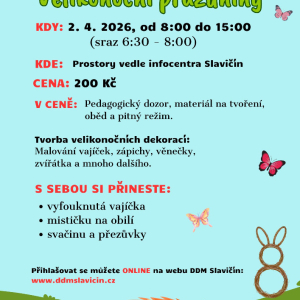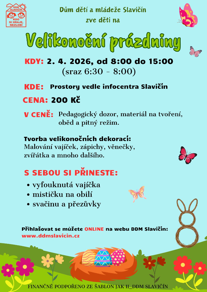 13.07.2026 DĚTI SE SEJDOU NA HŘIŠTI - ŠATNÁCH V LOUČCE, KDE BUDOU PROBÍHAT TÁBOROVÉ AKTIVITY, SOUTĚŽE, HRY, TVOŘENÍ. NEBUDE CHYBĚT ANI VÝLET, NÁVŠTĚVA KINA VE SLAVIČÍNĚ A MÍSTNÍ VÝBORNÁ ZMRZLINA. S NAŠIMI VEDOUCÍMI ZAŽIJETE HODNĚ ZÁBAVY. DĚTI SI BUDOU NOSIT PŘEZŮVKY, PITÍ A SVAČINKU. PROSÍM DÁVEJTE DĚTEM ...